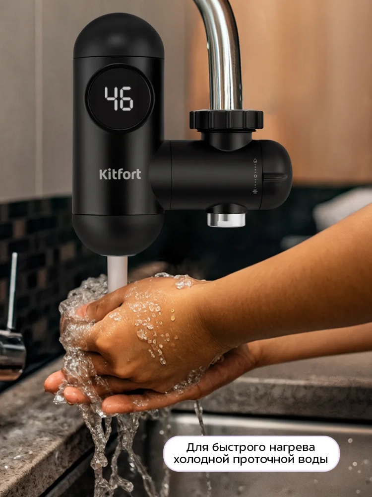 Проточный водонагреватель KT-6524 обладает компактными размерами, поэтому он не займет много места на вашей кухне или в ванной.