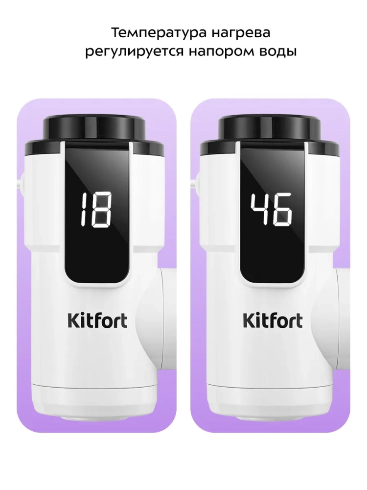 Проточный водонагреватель Kitfort KT-6525 предназначен для быстрого нагрева холодной проточной воды. Водонагреватель отличается простотой и легкостью монтажа: закрепите устройство на вашем смесителе вместо аэратора. В комплекте поставляются муфты для смесителей разного диаметра.