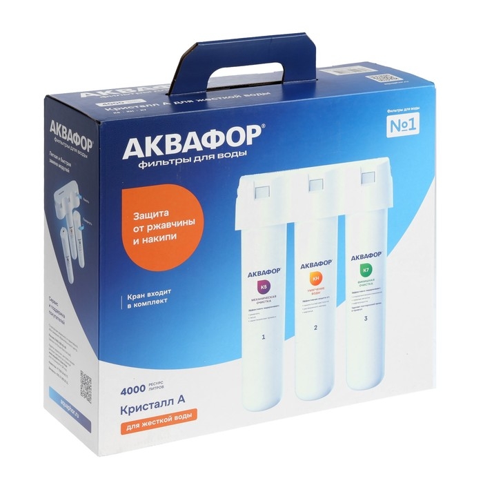 Водоочиститель "Аквафор" Кристалл А, для жёсткой воды, 3-х ступенчатый
