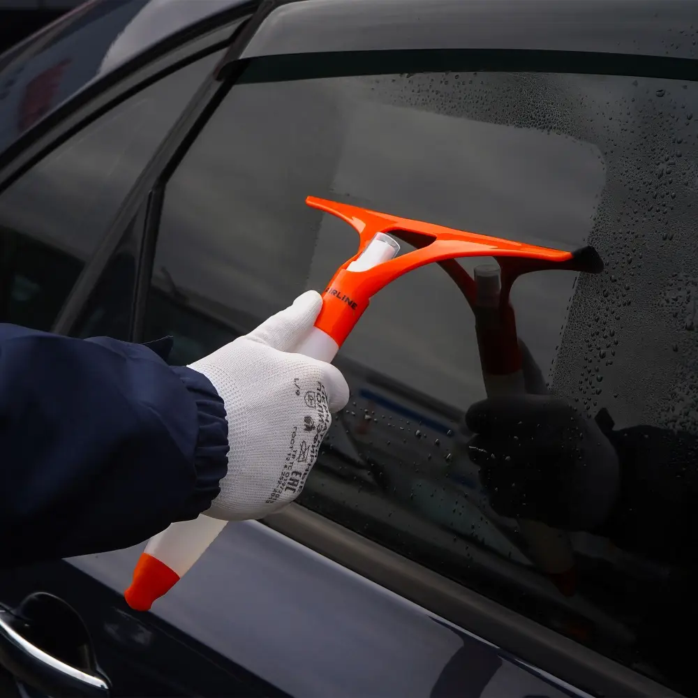 Водосгон представляет собой флакон объемом 125 мл с распылителем, и лезвие длиной 25 см, выполненное из мягкой резины.