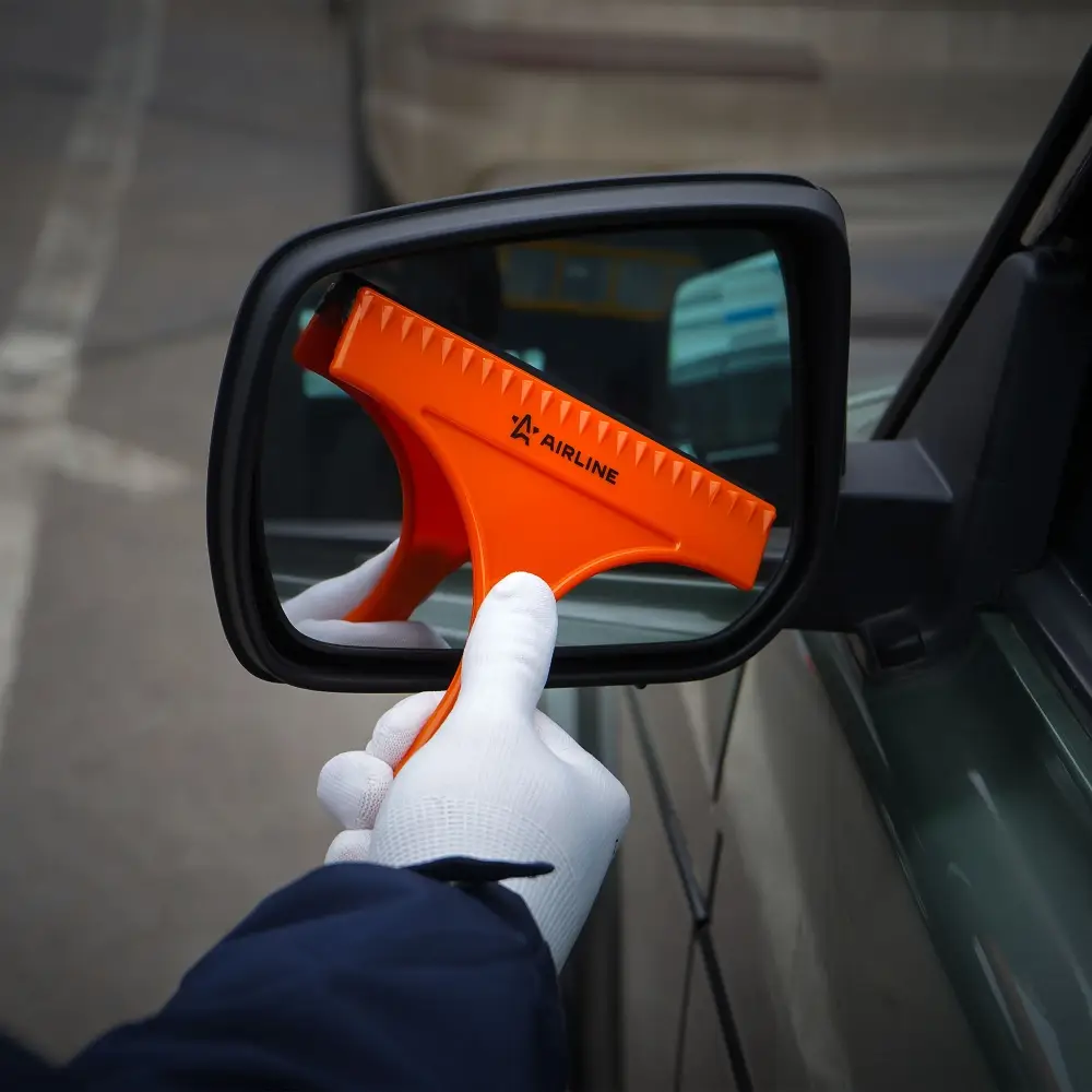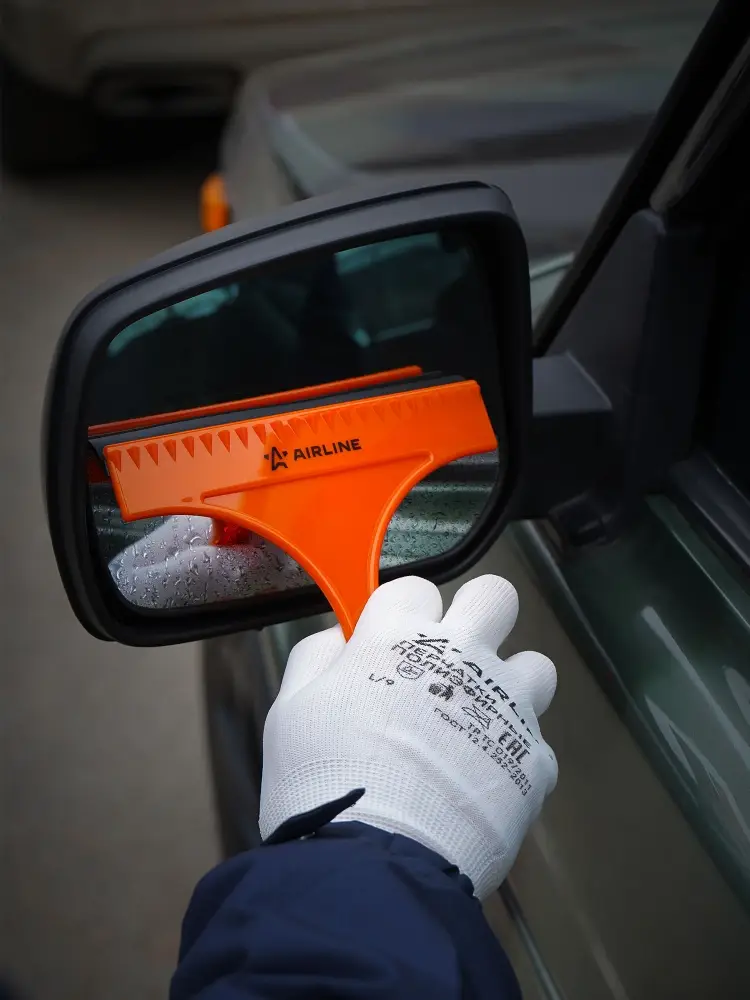 Водосгон изготовлен из термопрочного пластика. Лезвие водосгона изготовлено из резины, которая отличается высокими показателями мягкости, что позволяет очищать стекла без царапин. Ширина рабочей поверхности изделия равна 16 см. Водосгон со скребком для удаления наледи может быть использован в любое время года.