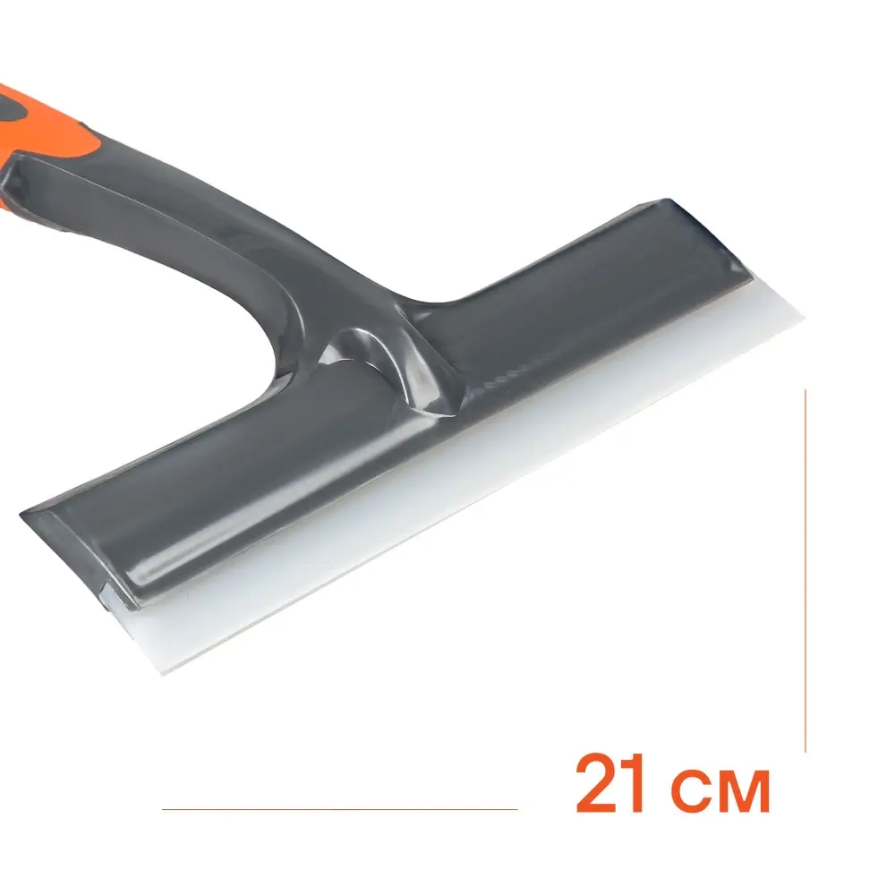 Водосгон данной модели имеет усиленную пластиковую ручку и усовершенствованный водосгон, позволяющий еще более тщательно очищать убираемую поверхность. Водосгон изготовлен из силикона, который мягко и плавно удаляет жидкость, не оставляя царапин после работы. Силиконовая поверхность обеспечивает эксплуатацию изделия на протяжении длительного периода времени, т.к. рабочая поверхность не подвергается быстрому износу и поломкам.