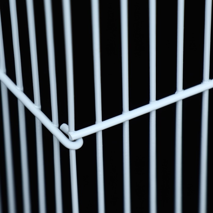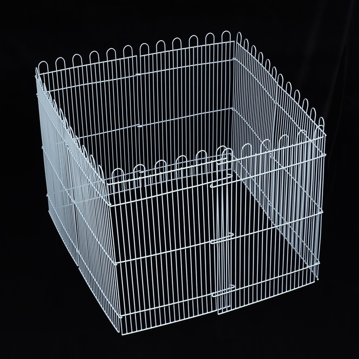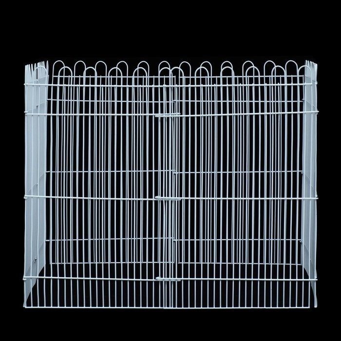 Вольер (клетка) сделан из негнущихся металлических секций, его можно быстро собрать и разобрать на открытом воздухе или в квартире без каких-либо дополнительных инструментов. Съемная конструкция складных перегородок разборного домика позволяет формировать квадратную, прямоугольную или любую неправильную форму.