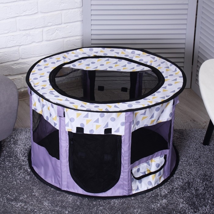 Вольер для животных, тентовый с узором, круглый, 70 х 40 см, фиолетовый