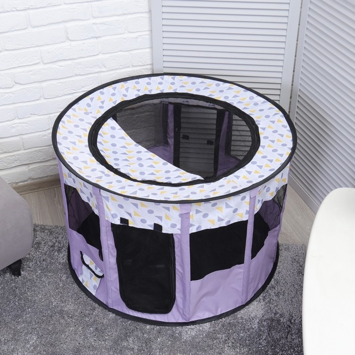 Вольер для животных, тентовый с узором, круглый, 90 х 55 см, фиолетовый