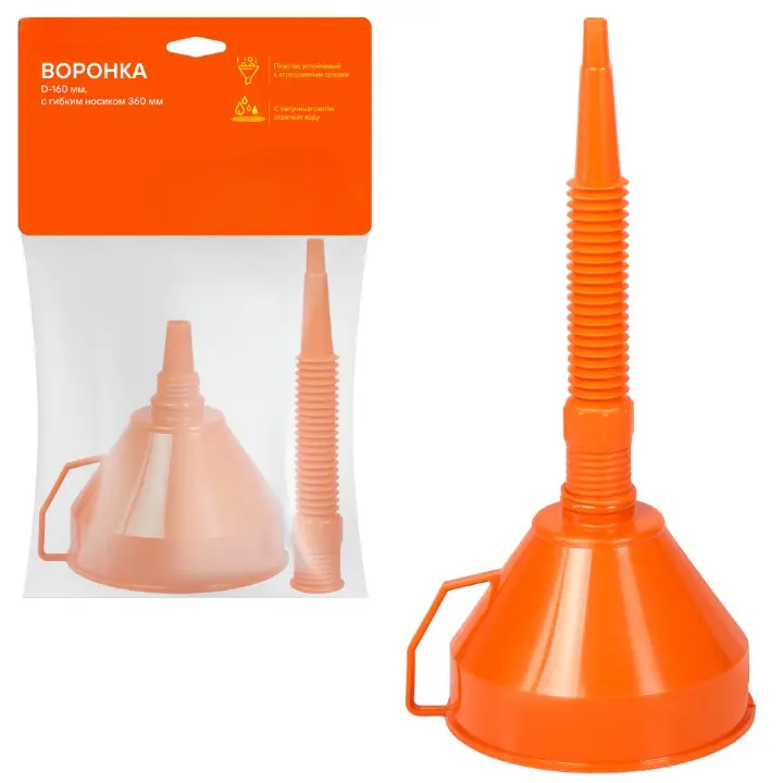 Воронка поможет аккуратно произвести процесс переливания жидкостей. Данная воронка имеет диаметр 160 мм. Благодаря гибкому носику воронки изделие можно расположить в любом удобном положении и под необходимым углом. Воронка укомплектована латунной специальной мелкоячеистой сеткой для фильтрации мусора при переливании.