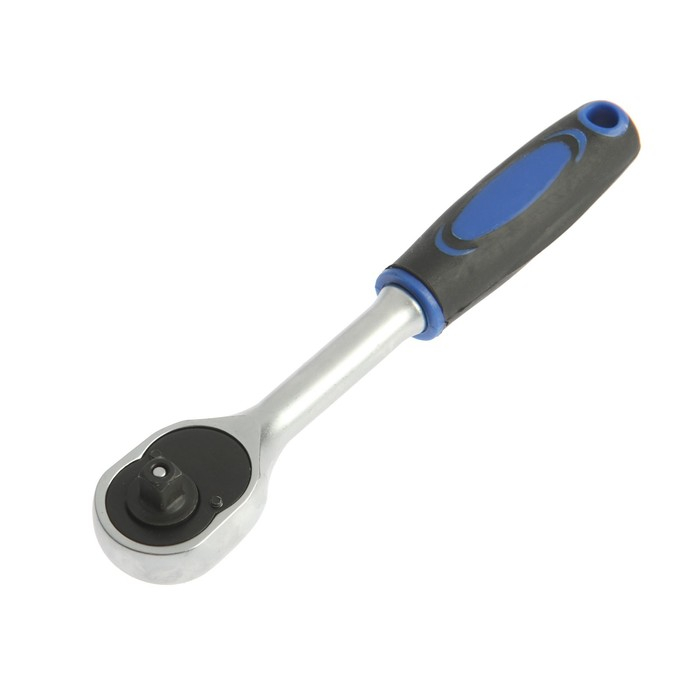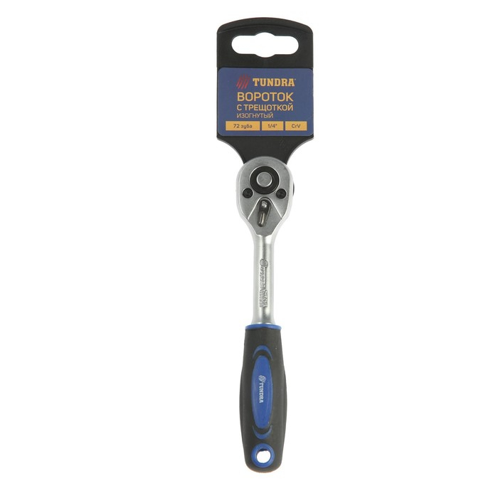 Вороток с трещоткой ТУНДРА, CrV, квадрат 1/4", изогнутая 2К рукоятка, 72 зубца, 150 мм