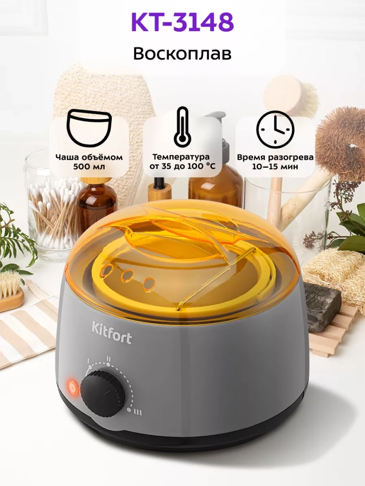 Компактный и простой в использовании воскоплав Kitfort КТ-3148 подойдет для домашнего использования. Данный прибор разогревает воск в таблетках или гранулах, а также подходит для разогревания парафина или пасты для шугаринга.