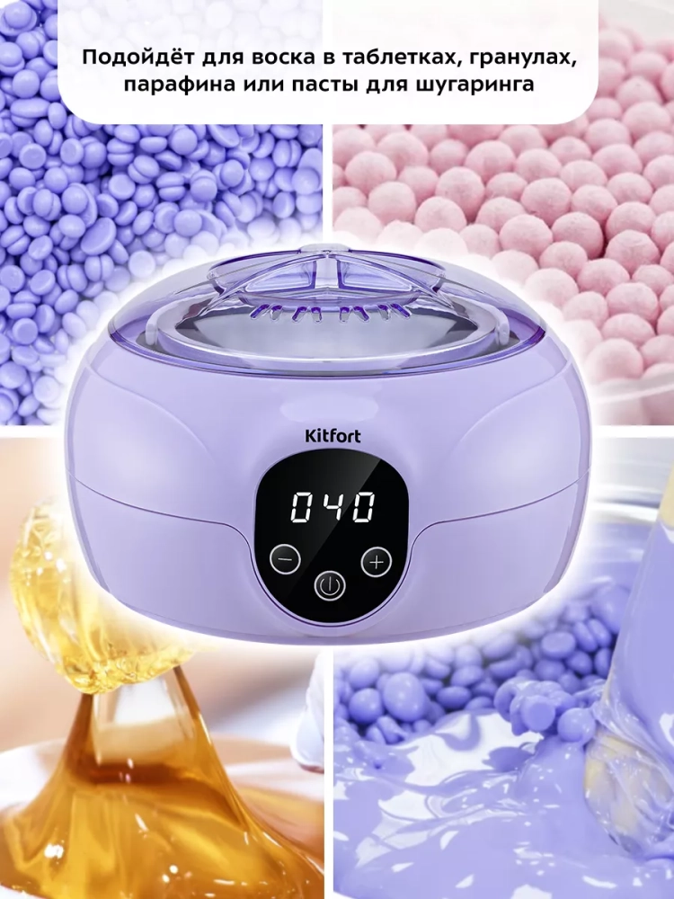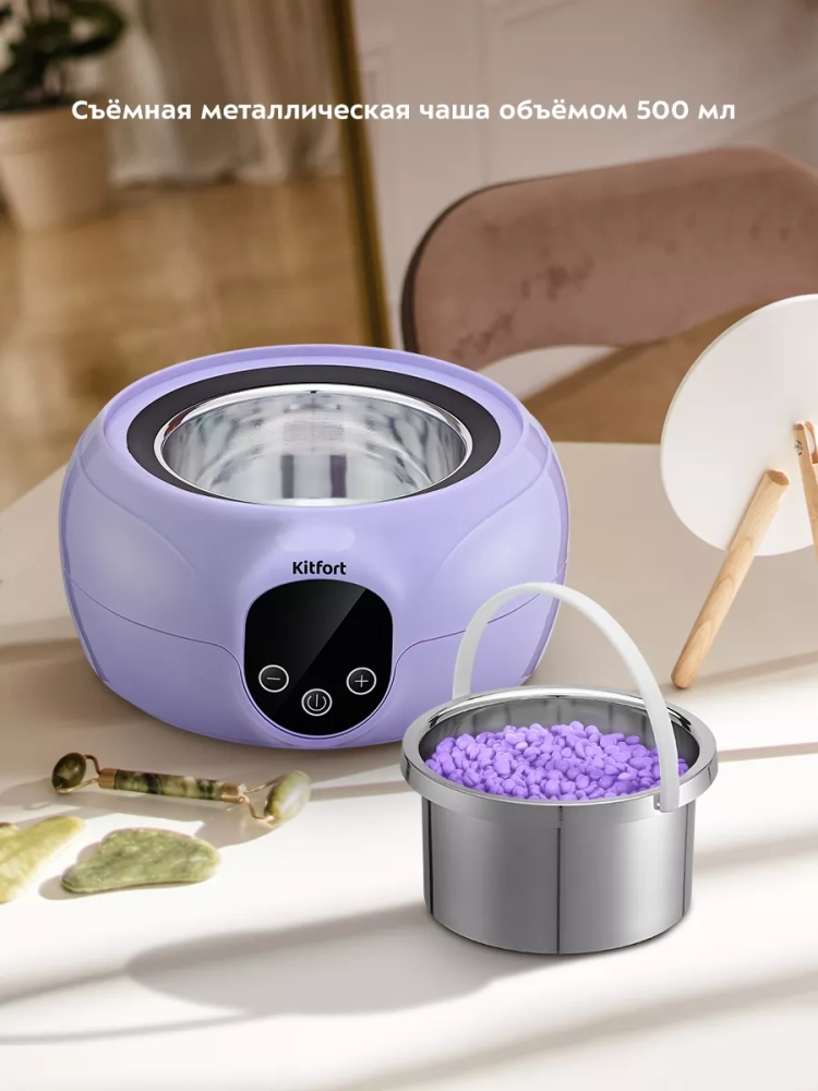 Компактный и простой в использовании воскоплав Kitfort КТ-3149 подойдет для домашнего использования. Данный прибор разогревает воск в таблетках или гранулах, а также подходит для разогревания парафина или пасты для шугаринга.