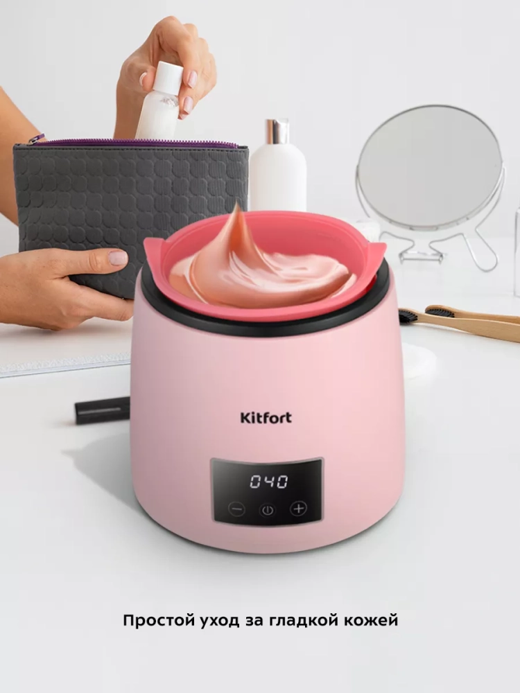 Компактный и простой в использовании воскоплав Kitfort КТ-3150 подойдет для домашнего использования. Данный прибор разогревает воск в таблетках или гранулах, а также подходит для разогревания парафина или пасты для шугаринга.
