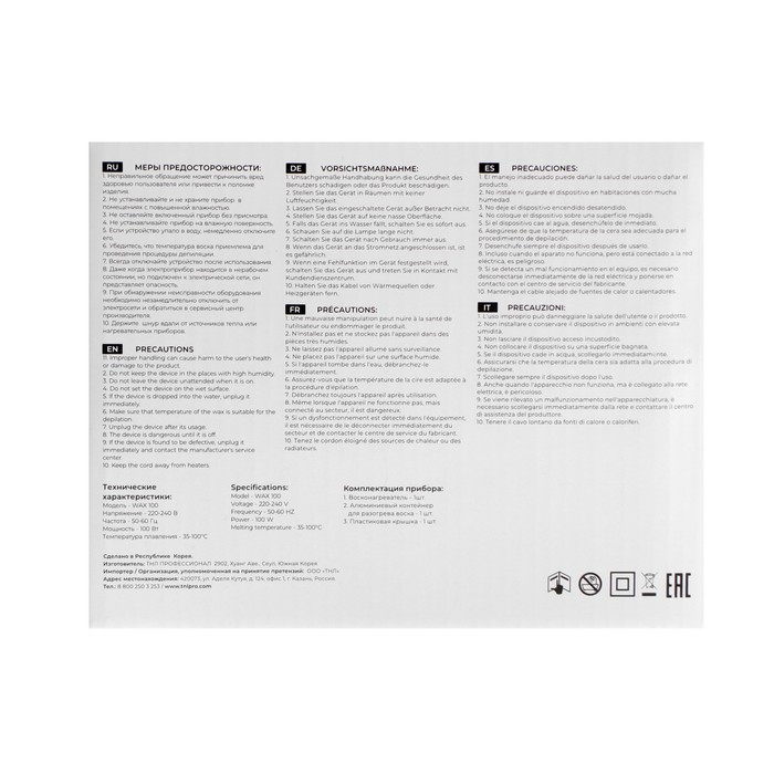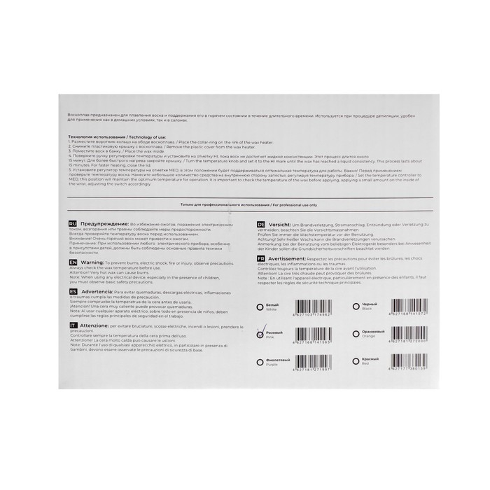 - В комплекте: алюминиевый контейнер для разогрева воска и пластиковая крышка.