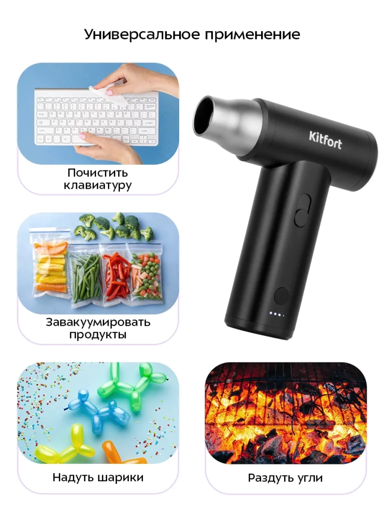 Воздуходувка Kitfort КТ-4318 — идеальный инструмент для чистки системных блоков, клавиатур и ноутбуков.