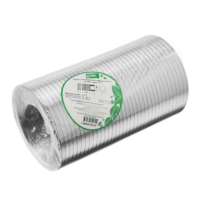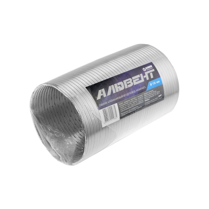 Воздуховод гофрированный "Алювент", d=130 мм, раздвижной до 1.5 м, алюминиевый