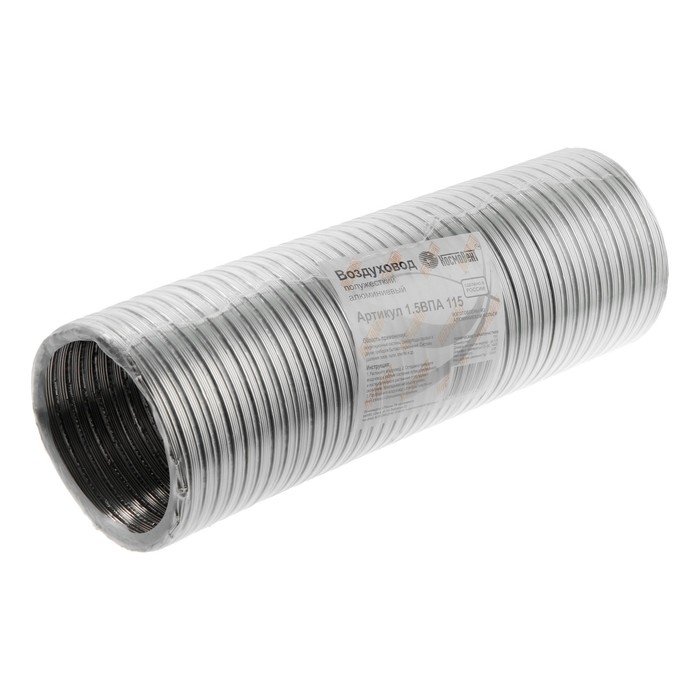 Воздуховод гофрированный "КосмоВент", d=115 мм, раздвижной до 1.5 м, алюминий 80 мКм