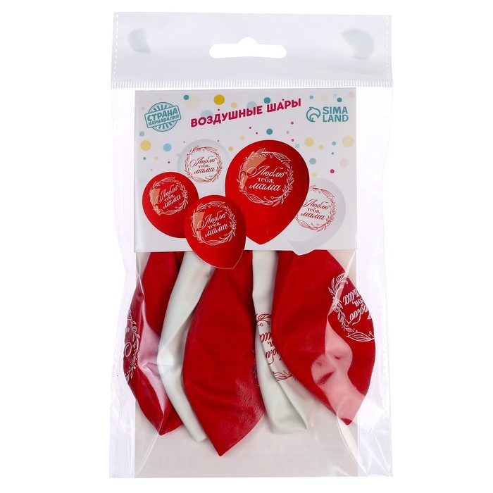 Воздушный шар латексный 12" «Люблю тебя, мама», 5 шт.