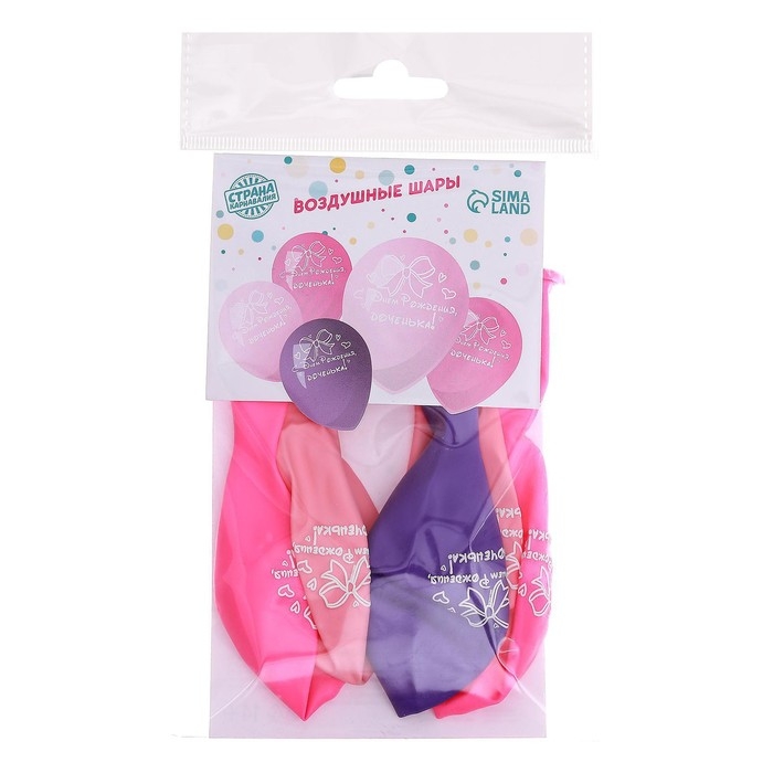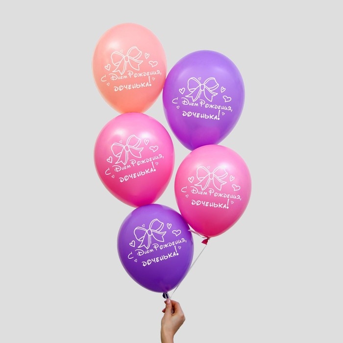 Воздушный шар латексный 12" "С днем рождения, доченька", бант, 5 шт.