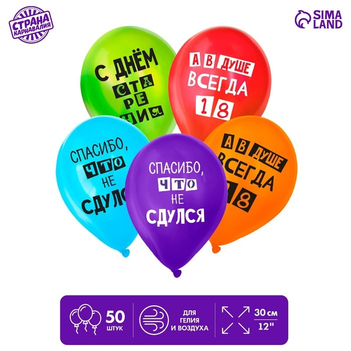 Воздушный шар латексный 12" «С днём рождения», юмор, цветные, 50 шт.