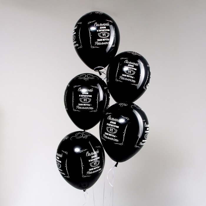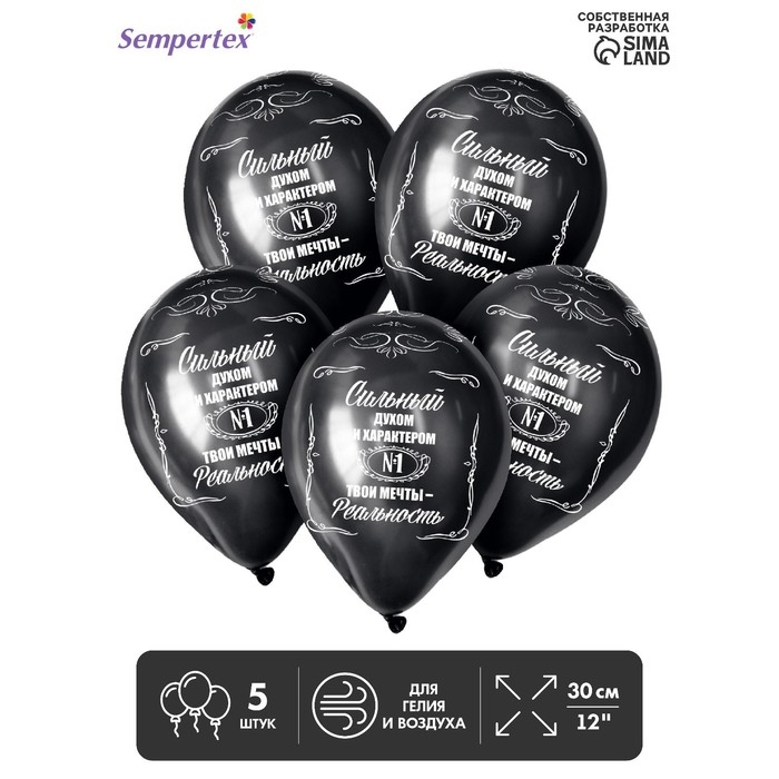 Воздушный шар латексный 12" «Сильным!», пастель, цвет чёрный, 5 шт.