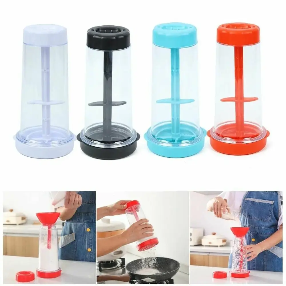 5. Необходимый инструмент для выпечки: широко используется для приготовления и изготовления различной выпечки, такой как кексы, блины, вафли, кексы, торты и блины. Этот просеиватель для муки имеет прозрачную камеру, позволяющую легко видеть содержимое муки. Конструкция воронки обеспечивает точную заливку и равномерное распределение теста для кексов, блинов, вафель, кексов, тортов и многого другого. Незаменимый кухонный инструмент для любителей выпечки.