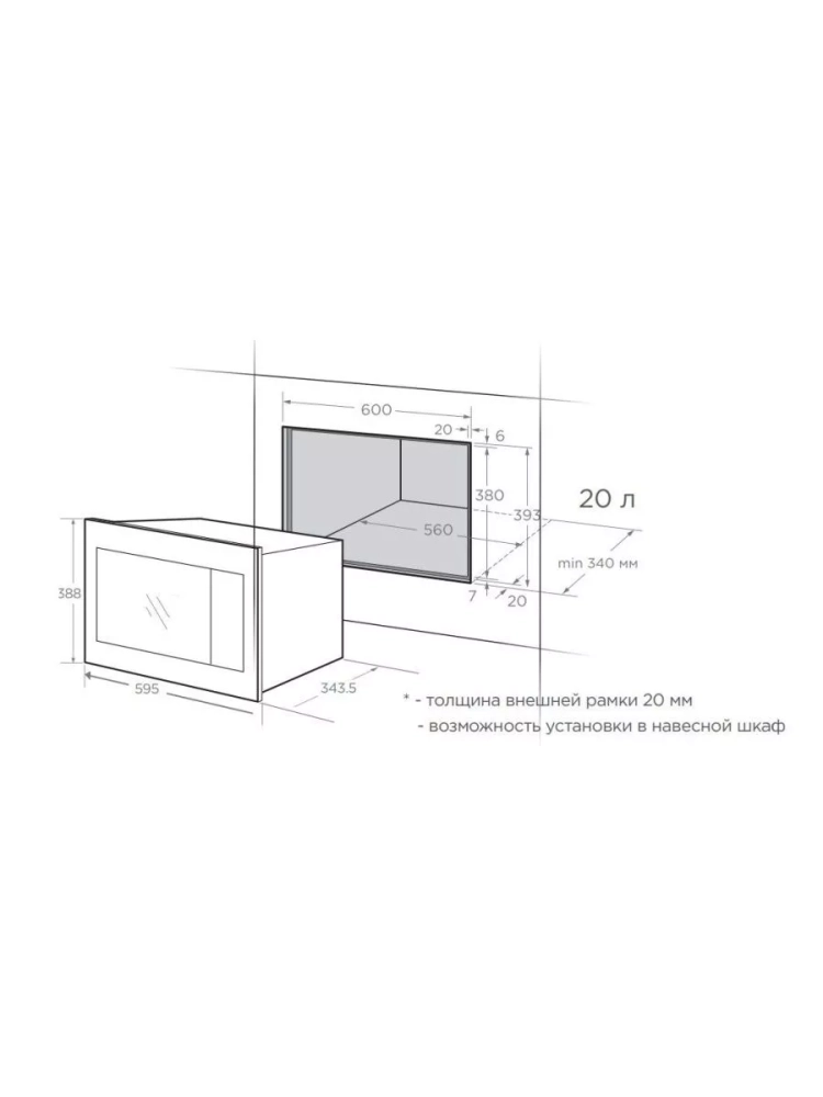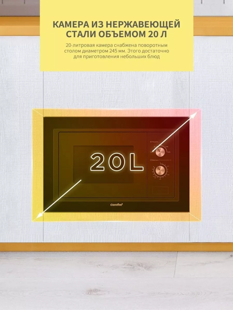 Встраиваемая микроволновая печь Comfee CBM200GB - сочетание мощности, стиля и удобства в одном приборе.