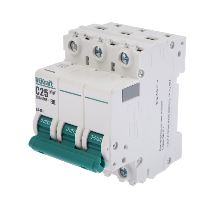 Выключатель автоматический SE DEKraft ВА-101, 3 полюса, С, 25 А, 4.5 кА, 11080DEK