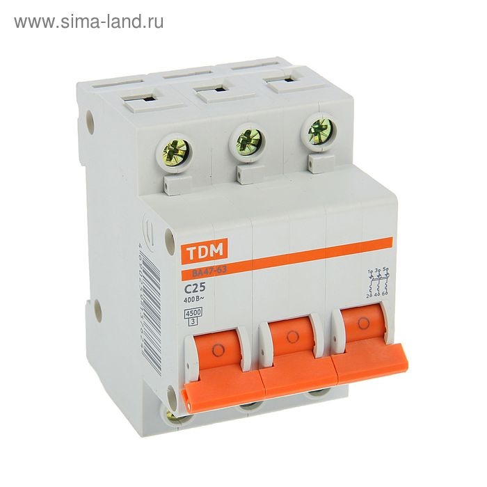 Выключатель автоматический TDM ВА47-63, 3п, 25 А, 4.5 кА