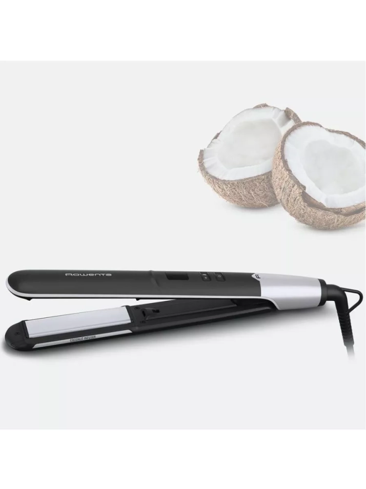 Утюжок оснащен керамическими пластинами и специальным покрытием, обогащенным кокосовым маслом, которое не только моделирует, но и придает шелковистую гладкость волосам. Антистатическая ионизирующая система делает локоны послушными, а также придает им естественный блеск. Благодаря технологии Liss & Curl плойку 2 в 1 можно использовать как для кудрей, так и для выпрямления. Кроме того, плавающие пластины автоматически подстраиваются под толщину пряди, обеспечивая легкое скольжение и быструю укладку.
