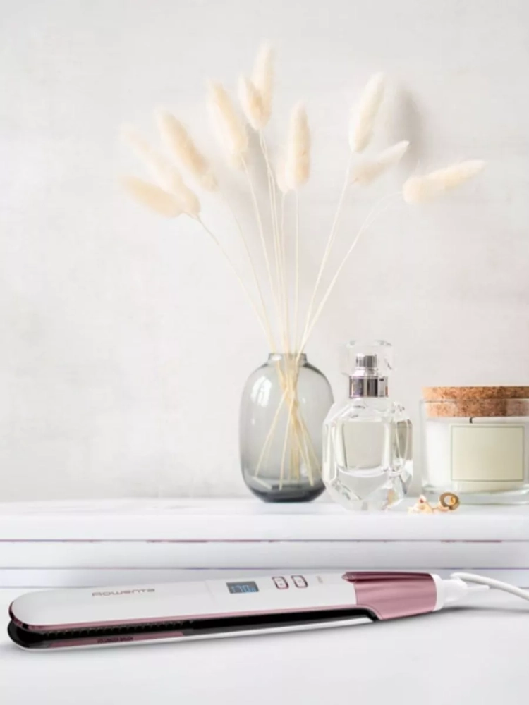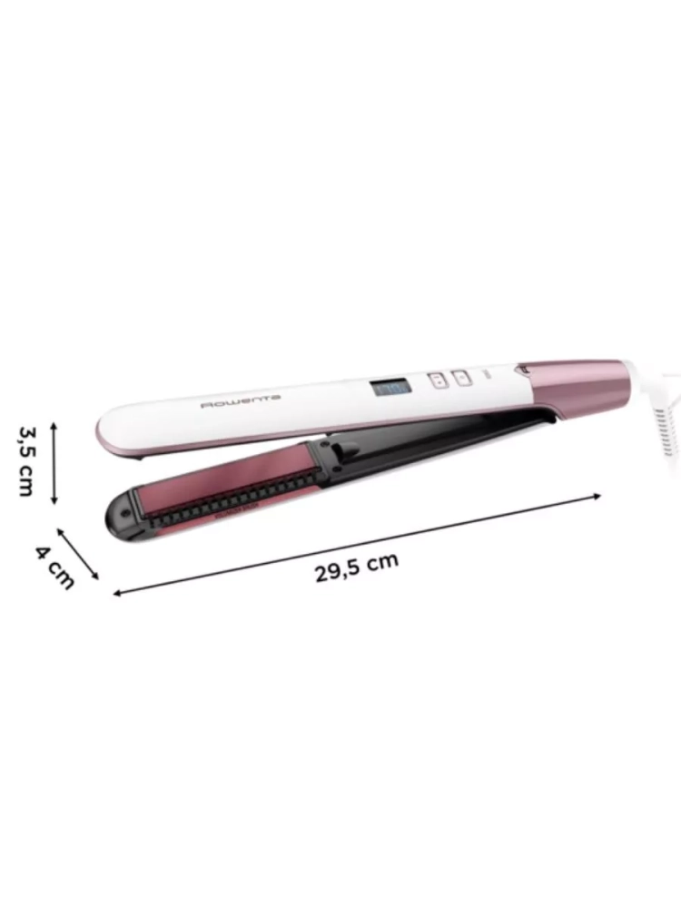 Плойка оснащена плавающими пластинами, которые автоматически подстраиваются под толщину пряди, обеспечивая легкое скольжение и быструю укладку. Встроенная щетка из натуральной щетины поможет достичь естественного объема и безупречного результата, а керамическое покрытие Quartz Rose Ceramic в сочетании с ионизацией снизит статическое электричество, придавая локонам гладкость и блеск. Выпрямитель Ровента имеет 8 режимов от 140 °С до 210 °C, в том числе режим ухода 170 °C для здоровых и защищенных волос и режим Boost 210 °C для интенсивного выпрямления.