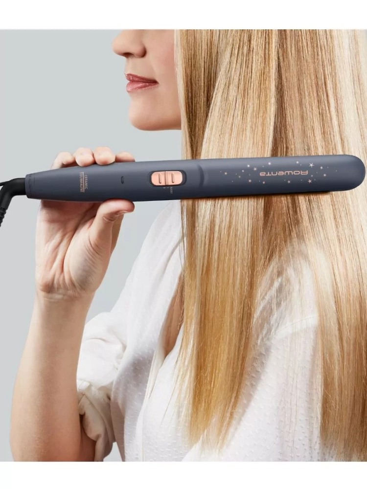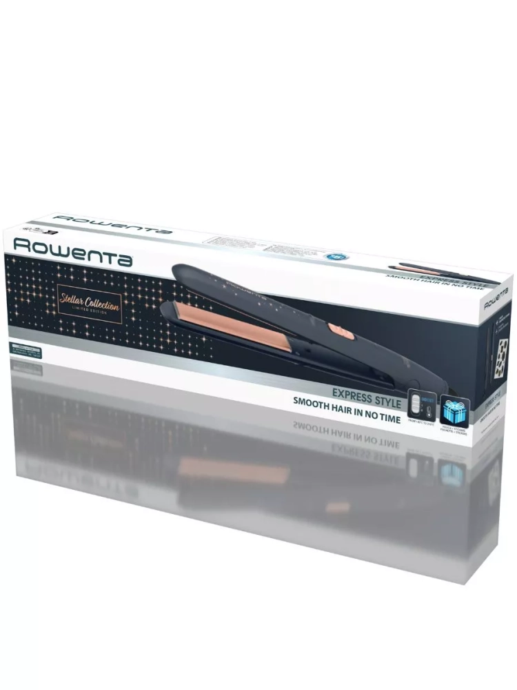 Выпрямитель для волос Rowenta Express Style Stellar Collection SF1831F0. Гладкие волосы в одно движение. Выпрямитель для волос Rowenta Express Style Stellar Collection впечатляет своими возможностями и функционалом. Он быстро обеспечивает идеальный результат, независимо от длины волос благодаря керамическому турмалиновому покрытию, двум температурным режимам 180 и 210 °C и на 20% более длинным пластинам, которые обеспечивают максимальный результат в одно движение.