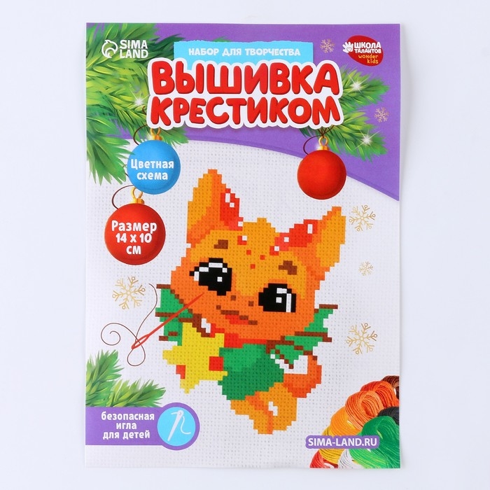 Небольшая вышивка с простым узором и цветной схемой — то, что нужно малышу. С таким набором даже новичок сможет создать сказочную картину, наполненную атмосферой праздника.