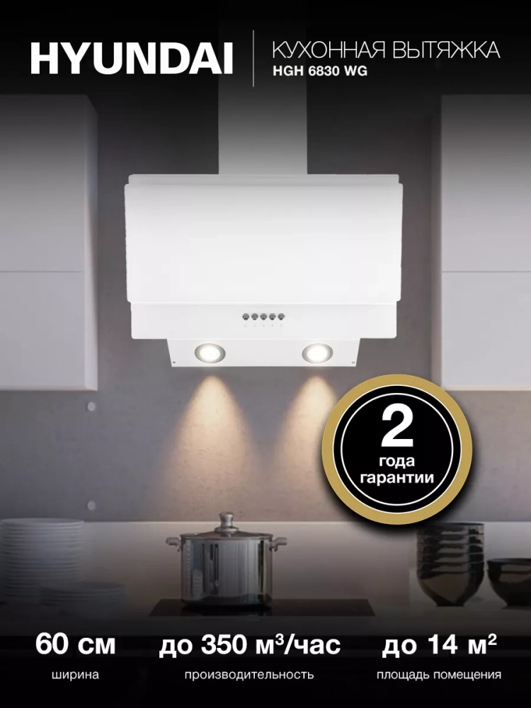Вытяжка каминная Hyundai HGH 6830 WG белый управление: кнопочное (1 мотор)