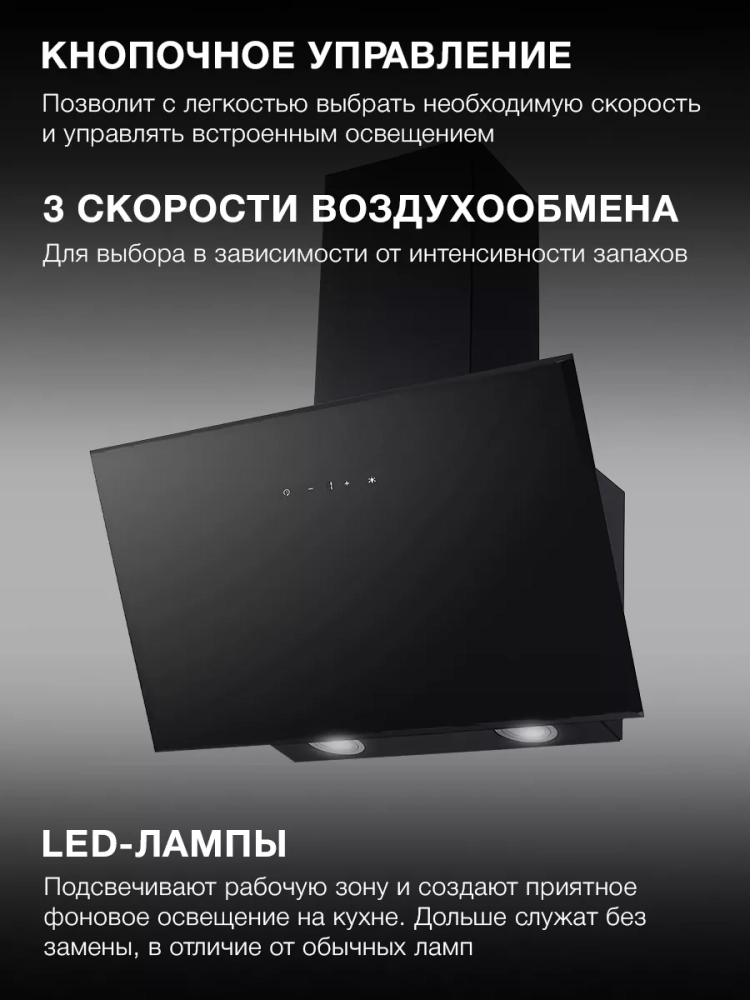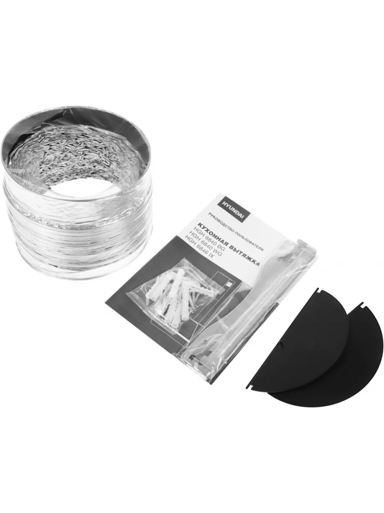 Каминная вытяжка Hyundai HGH 6840 BG черный, количество двигателей 1, режим работы отвод/циркуляция, сенсорное управление, алюминиевый жироулавливающий фильтр