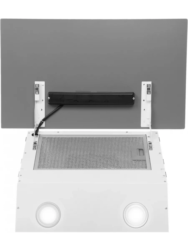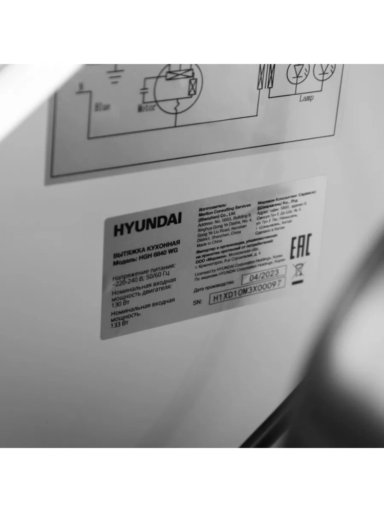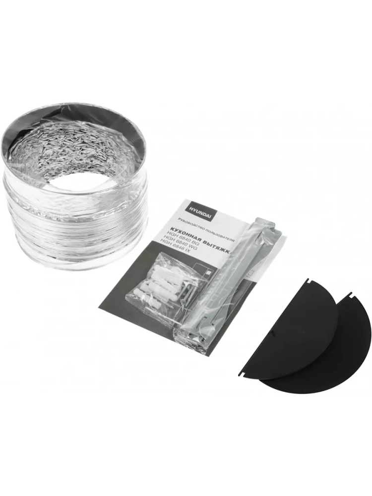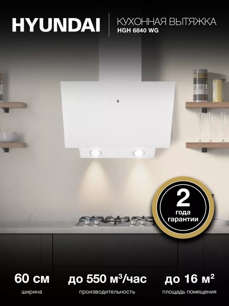 Каминная вытяжка Hyundai HGH 6840 WG белый, количество двигателей 1, режим работы отвод/циркуляция, сенсорное управление, алюминиевый жироулавливающий фильтр