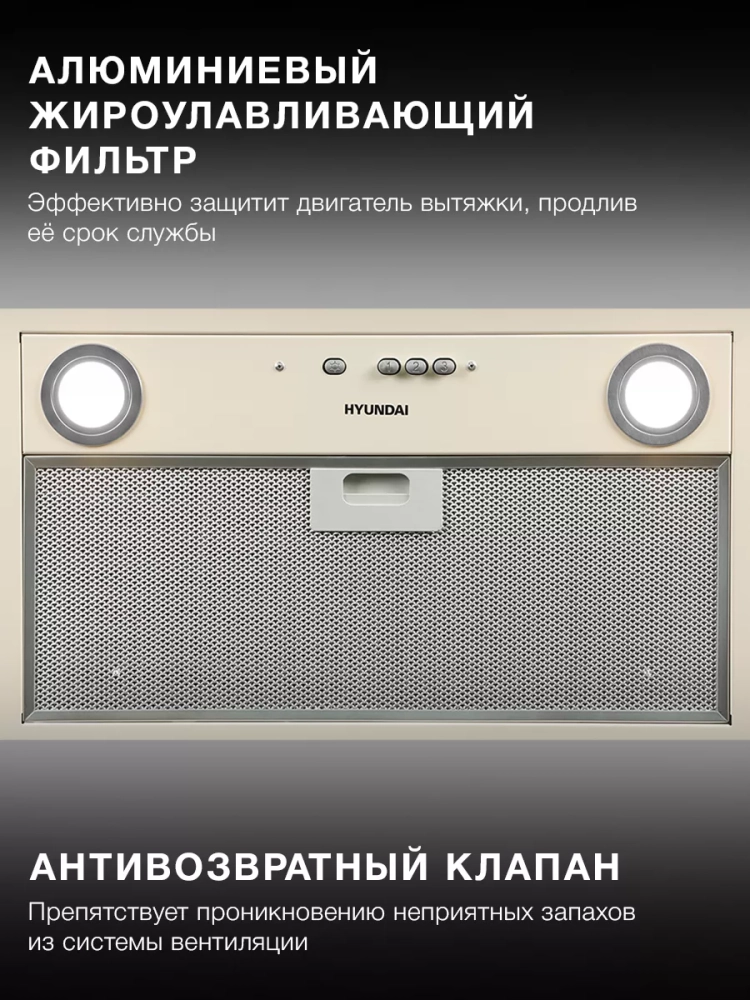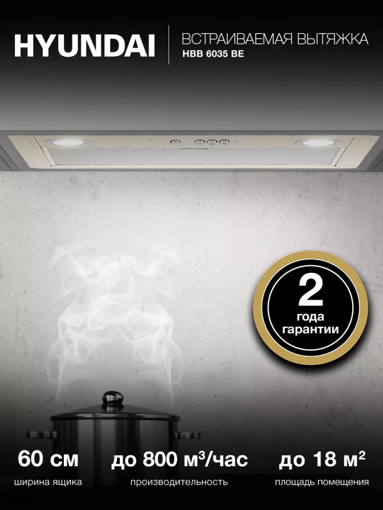Встраиваемая вытяжка Hyundai HBB 6035 BE значительно повысит эффективность естественной системы вентиляции и обеспечит возможность быстрой очистки воздуха на кухне. Габариты модели позволяют устанавливать её в кухонный шкаф шириной до 60 см, а бежевый корпус идеально сочетается со светлым кухонным гарнитуром.