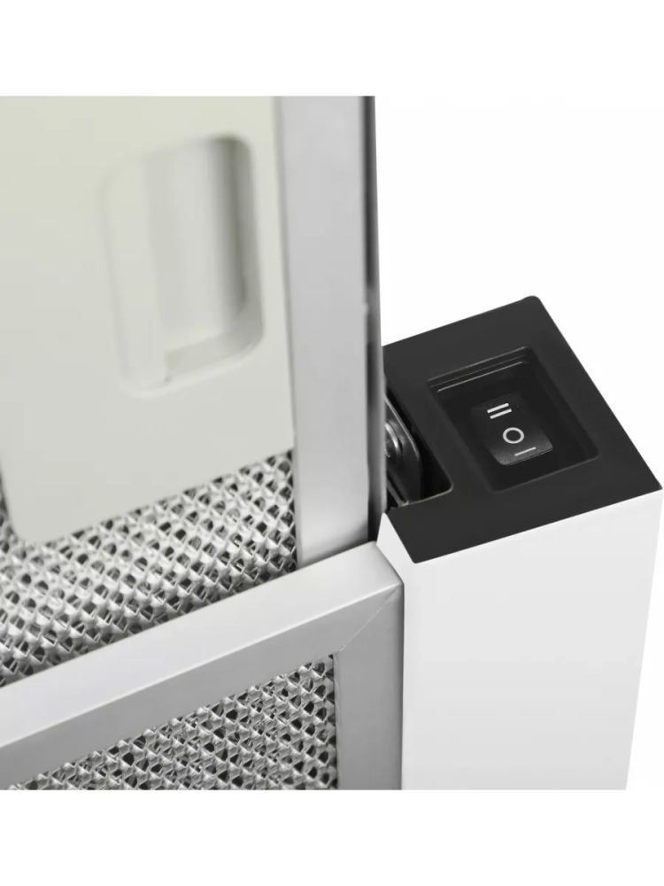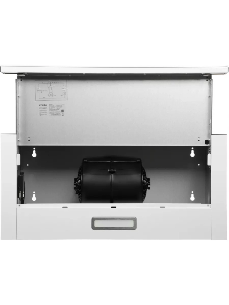 Встраиваемая вытяжка Hyundai HBH 6230 W белый, количество двигателей: 1, режим работы: отвод/циркуляция, кулисные переключатели управление, алюминиевый жироулавливающий фильтр