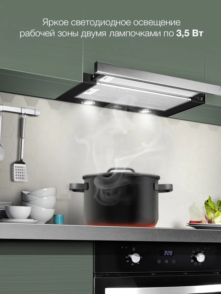 Встраиваемая вытяжка Hyundai HBH 6232 IX нержавеющая сталь/черный, количество двигателей: 1, режим работы: отвод/циркуляция, кнопочное управление, алюминиевый жироулавливающий фильтр