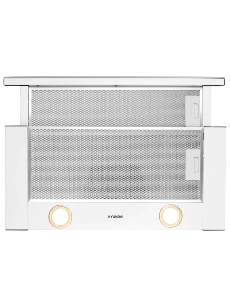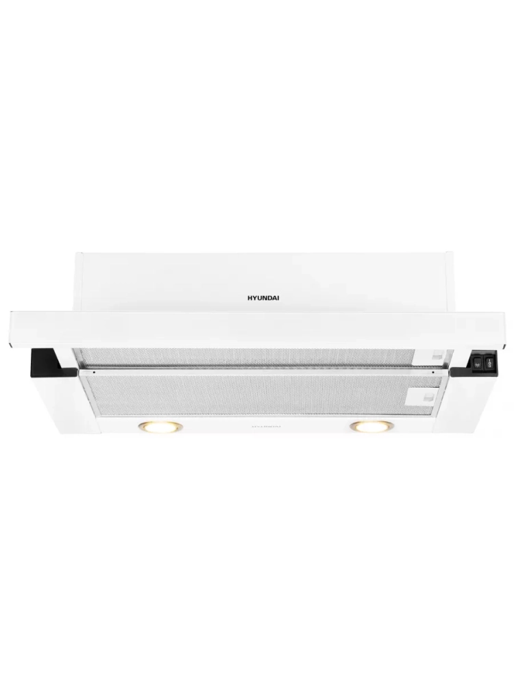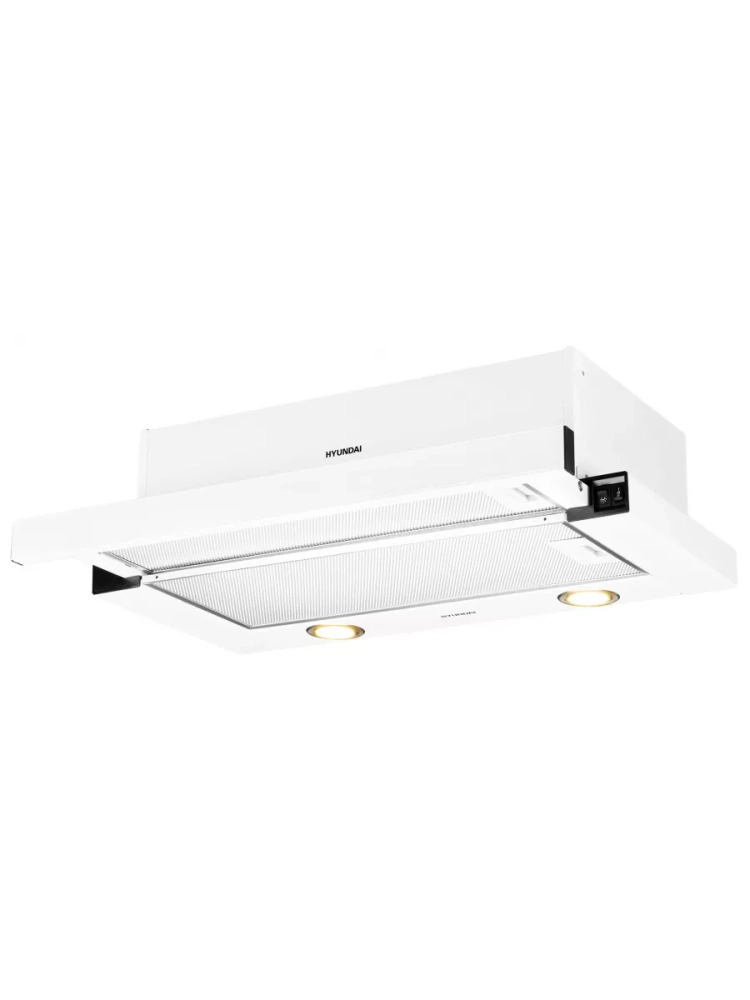 Встраиваемая вытяжка Hyundai HBH 6236 WG белый, количество двигателей: 1, режим работы: отвод/циркуляция, кулисные переключатели управление, алюминиевый жироулавливающий фильтр