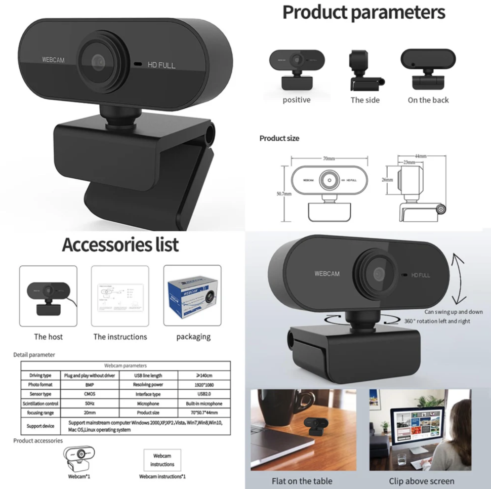 Веб-камера HD1080P - это отличное решение для тех, кто ищет качественную веб-камеру с микрофоном для своего компьютера. Эта веб-камера имеет разрешение 1920х1080 пикселей, что обеспечивает высокое качество изображения при видеозвонках и записи видео. Встроенный микрофон позволяет записывать звук высокого качества, что делает эту камеру идеальным выбором для проведения онлайн-конференций и видеочатов. Камера имеет автоматический фокус и угол обзора 120 градусов, что позволяет ей захватывать большую область изображения. Кроме того, веб-камера совместима с операционными системами Android, Linux, Mac OS и Windows, что делает ее универсальной и подходящей для использования на любом компьютере. Веб-камера поставляется с креплением на монитор, которое позволяет легко установить ее на вашем рабочем столе или ноутбуке. Кабель длиной 1 метр обеспечивает удобство использования и позволяет устанавливать камеру в любом удобном месте. Она также имеет небольшой вес и размеры, что делает ее удобной для переноски и хранения. Кроме того, камера доступна в черном цвете, что делает ее стильной и универсальной для любого интерьера. В целом, веб-камера HD1080P является отличным выбором для тех, кто хочет получить качественную веб-камеру с микрофоном по доступной цене. Она обеспечивает высокое разрешение и качество изображения, а также имеет все необходимые функции для удобной работы с видеозвонками и записью видео.