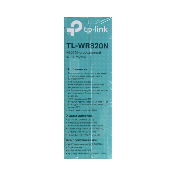 Wi-Fi роутер TP-Link TL-WR820N, 300 Мбит/с, 2 порта 100 Мбит/с, белый