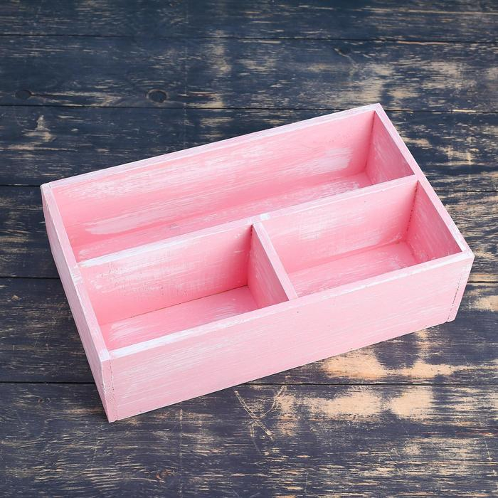 Ящик деревянный 34.5×20.5×10 см подарочный комодик, розовая кисть