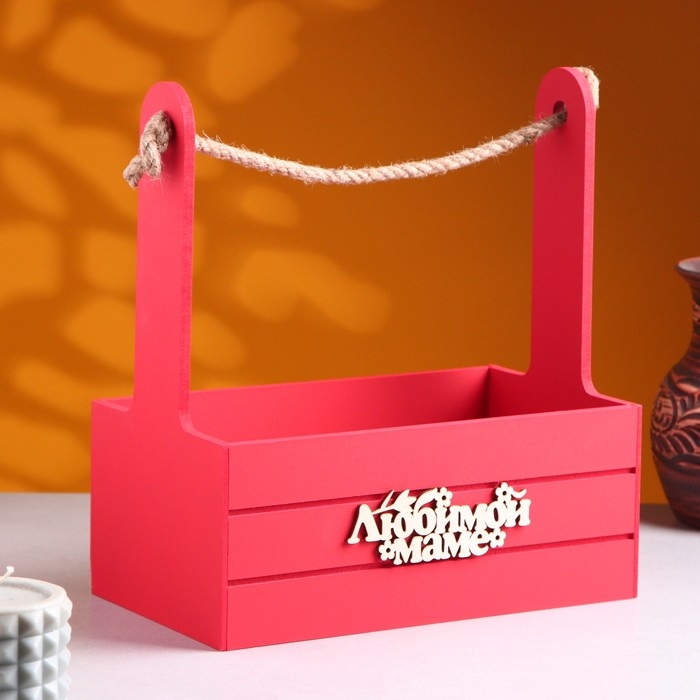 Ящик - кашпо деревянный 25х15х30 "Любимой Маме" Красный