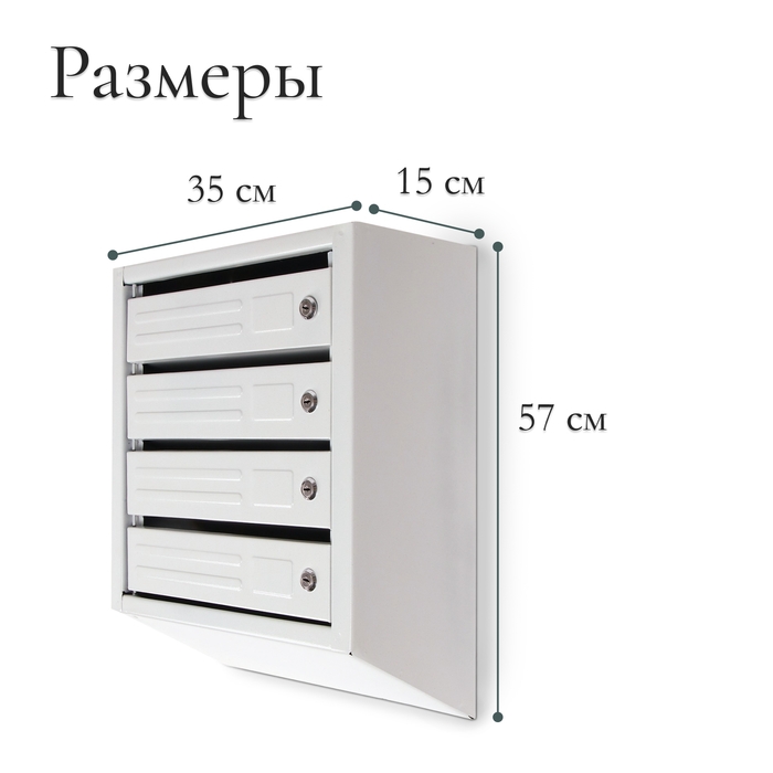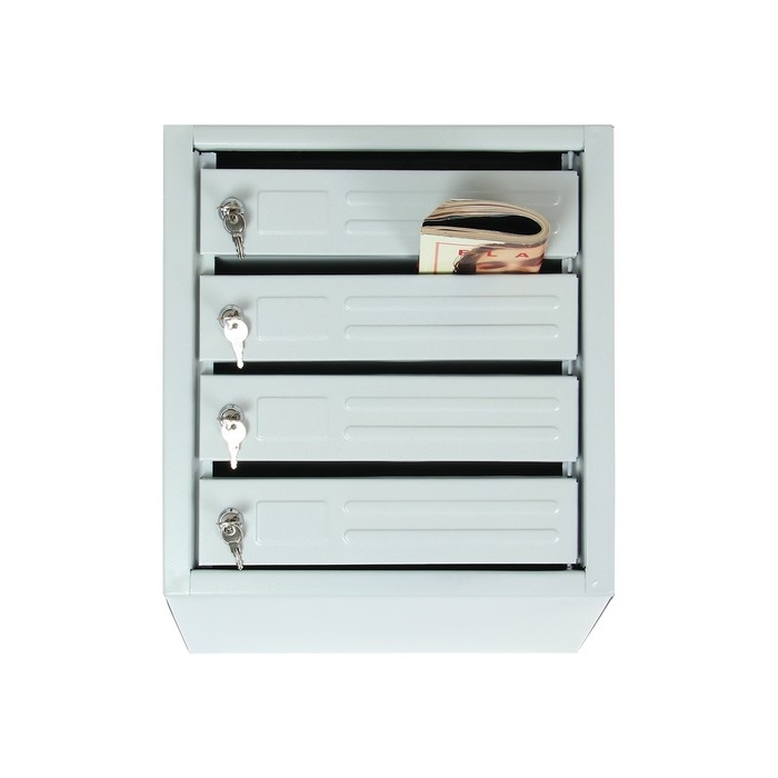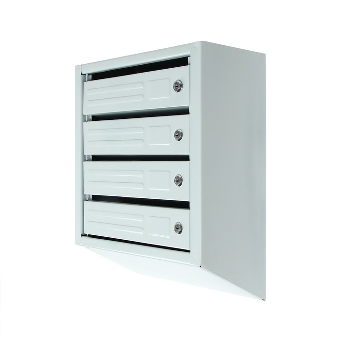 Ящик почтовый многосекционный, 4 секций, с задней стенкой, серый, дверка МИКС