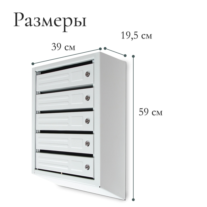 Ящик почтовый многосекционный, 5 секций, с задней стенкой, серый, дверка МИКС