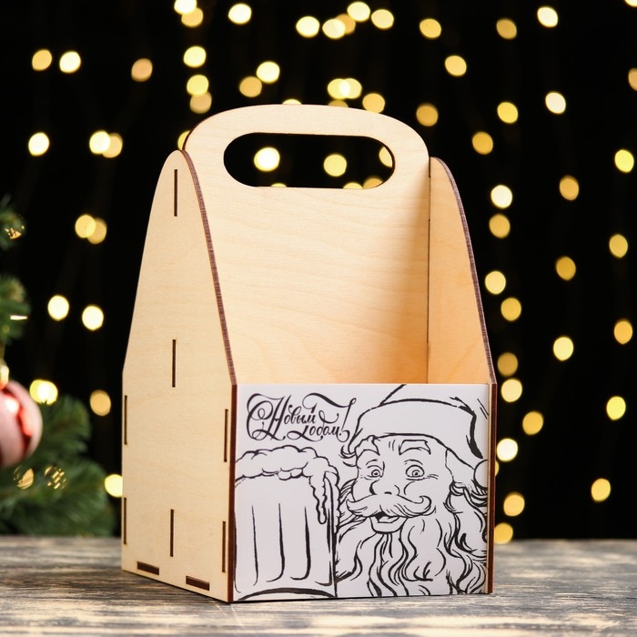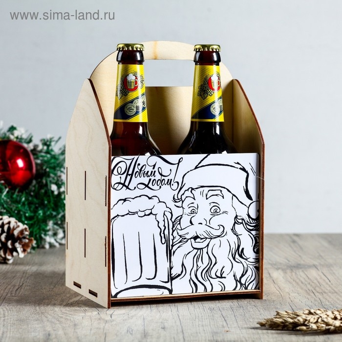 Ящик под пиво "С Новым Годом!" Дед Мороз и кружка