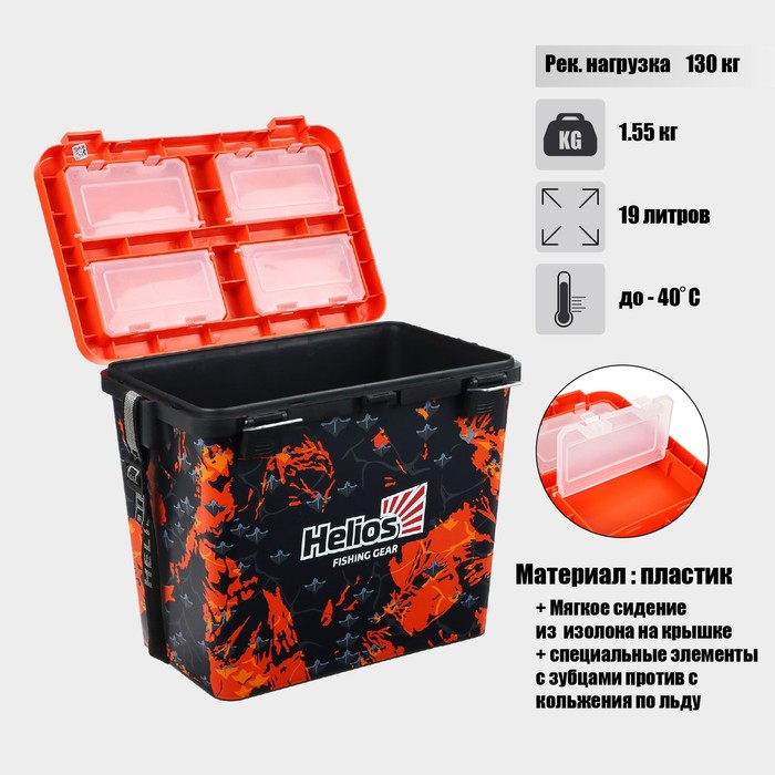 Ящик рыболовный зимний Helios SHARK, цвет оранжевый (HS-IB-19-SHO)