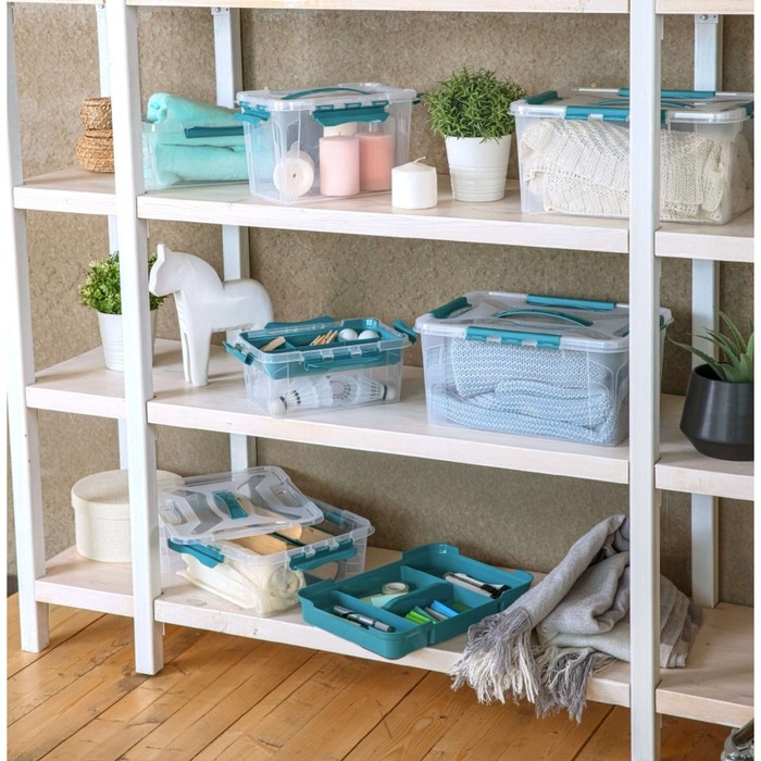 Ящик универсальный GRAND BOX, цвет голубой, с замками и вставкой-органайзером, 6,65 л