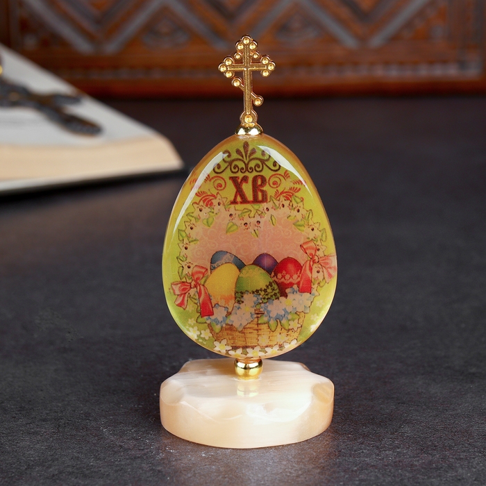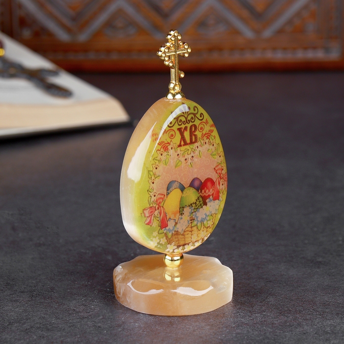 Яйцо на подставке "Христос Воскресе" №4, селенит