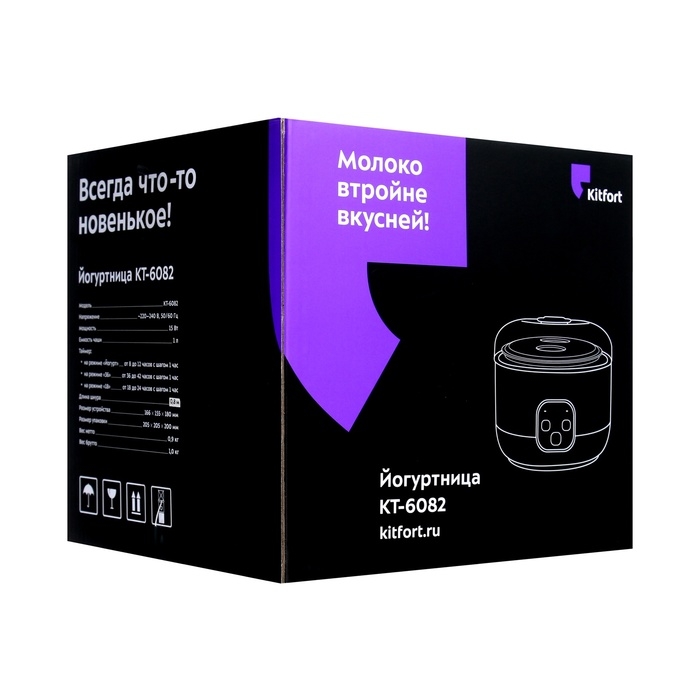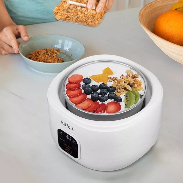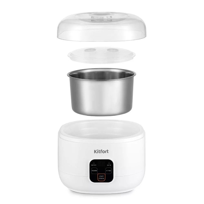 Йогуртница Kitfort KT-6082, 15 Вт, 1000 мл, 1 ёмкость, таймер, металл, белая
