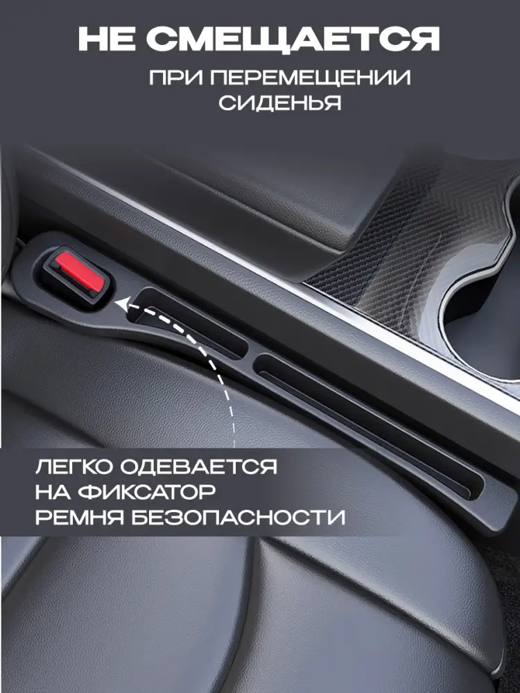Универсальный заполнитель зазора черного цвета, для предотвращения попадания мелких предметов в труднодоступное пространство между вашим автокреслом и центральной консолью. Этот практичный аксессуар идеально подходит как для автомобильных сидений, так и для консолей. Герметичный уплотнитель не имеет запаха, приятен на ощупь и долговечен. В нем есть прорезь для ремня безопасности, что обеспечивает безопасность и чистоту вашего автомобиля.