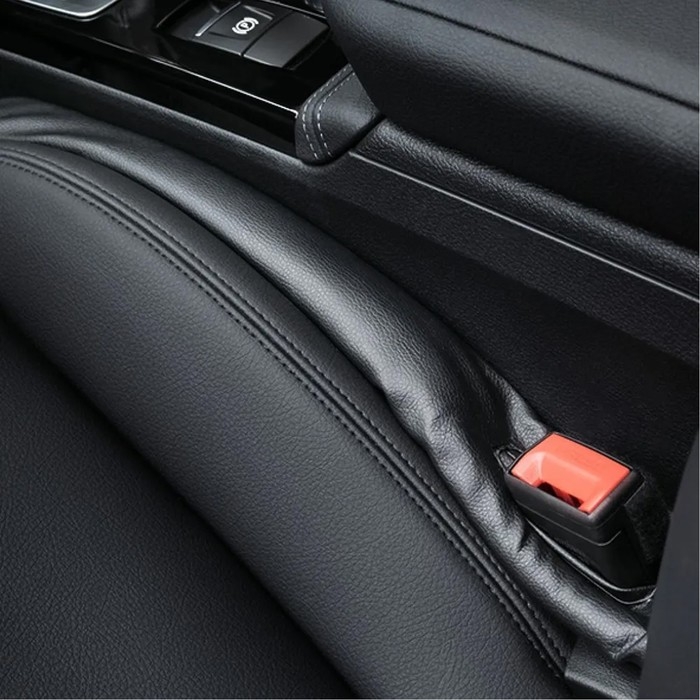Заглушка-уплотнитель устанавливается в проем между передним сиденьем и консолью. Предотвращает падение мелких предметов (монет, ключей, косметики, телефонов). Оборудована специальной проушиной для замка ремня безопасности.